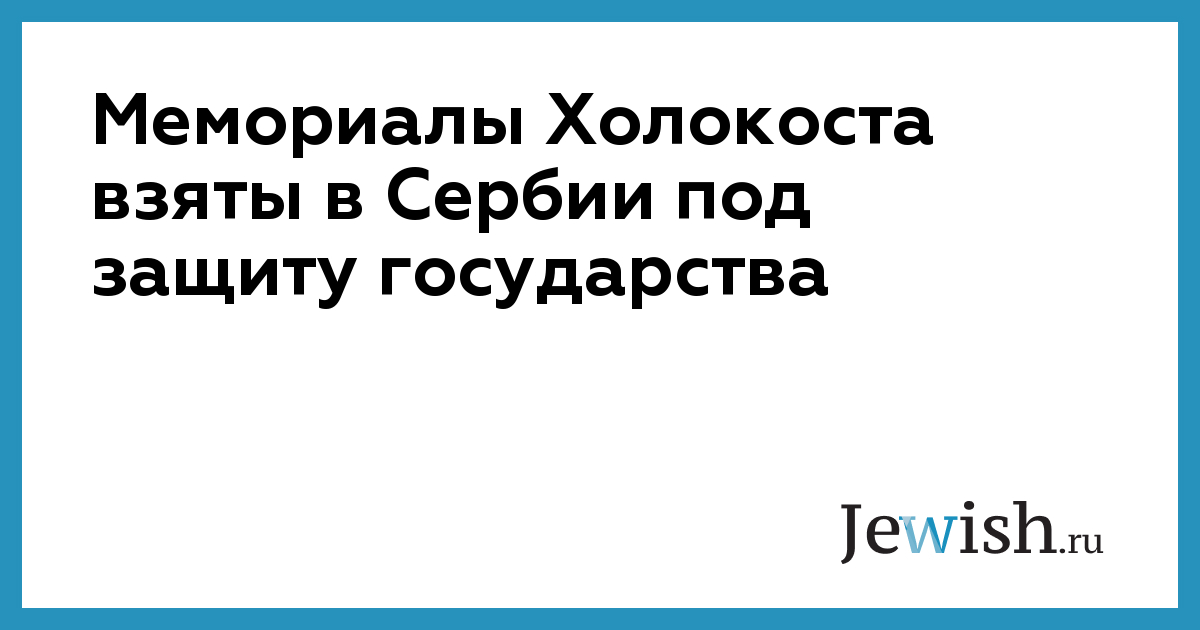 Мемориалы Холокоста взяты в Сербии под защиту государства