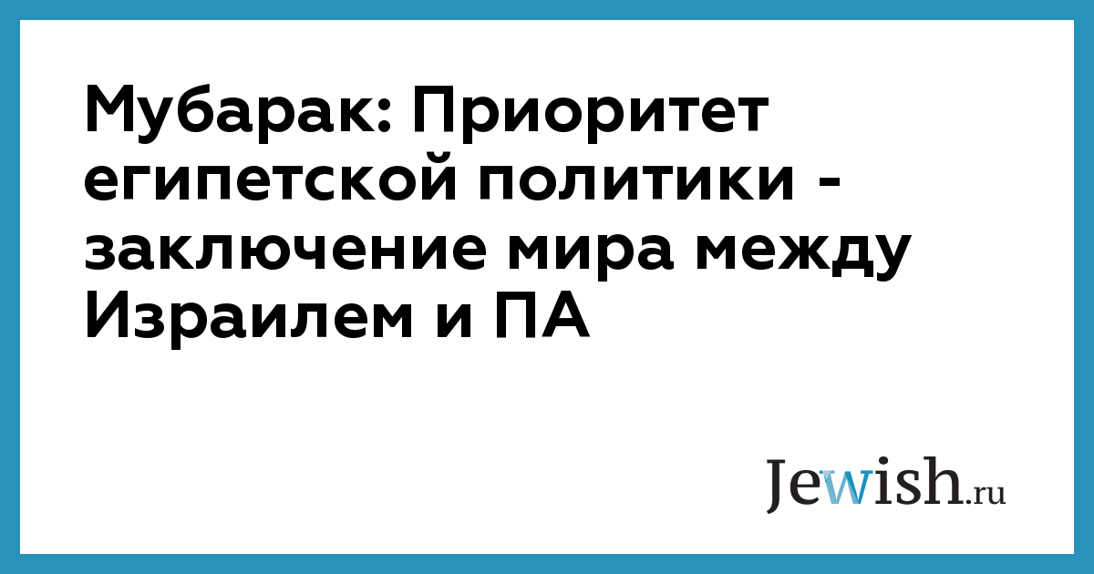 Мубарак: Приоритет египетской политики — заключение мира между Израилем и ПА