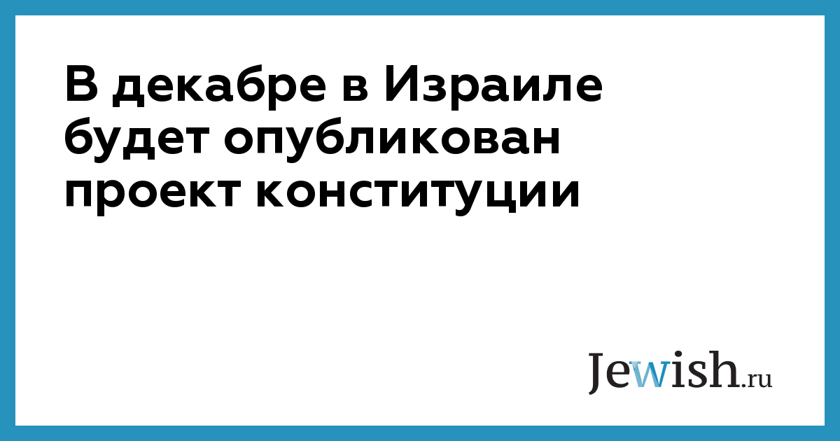 В декабре проект Конституции планируется опубликовать для широкого общественного обсуждения и представить на рассмотрение Кнессета,- сообщает Jnews.