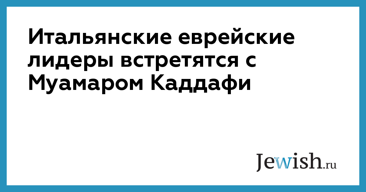 Муамар Каддафи сделал еще один шаг, направленный на улучшение взаимоотношений Ливии с еврейским миром. После того, как он недавно заявил о своем намерении выплатить компенсации евреям, выдворенным из Ливии после 1967 года, в субботу вечером в ливийский город Бангези отправилась делегация итальянских евреев, чтобы встретиться там с Каддафи. В состав делегации вошли председатель еврейской общины Либорно Шмуэль Зарок, один из руководителей еврейской общины в Риме Шалом Тшува и еще четыре человека. Группа пробудет в Ливии два дня.