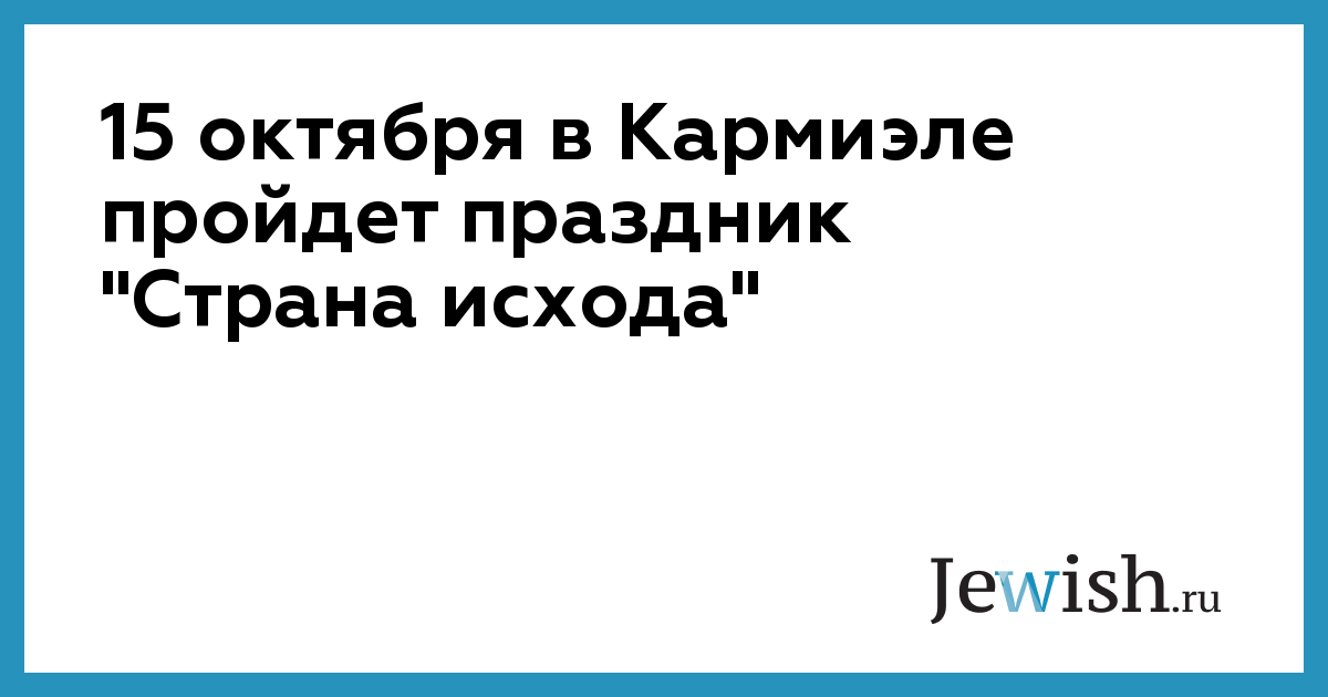 15 октября в Кармиэле пройдет праздник "Страна исхода"