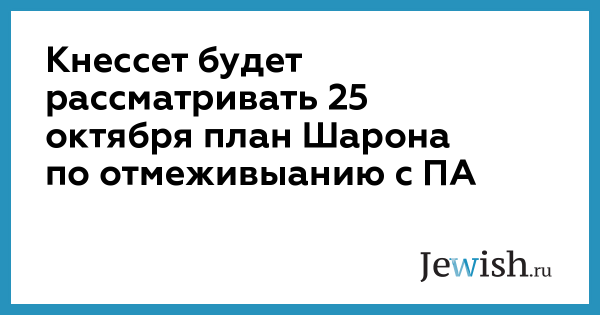 Кнессет будет рассматривать 25 октября план Шарона по отмеживыанию с ПА