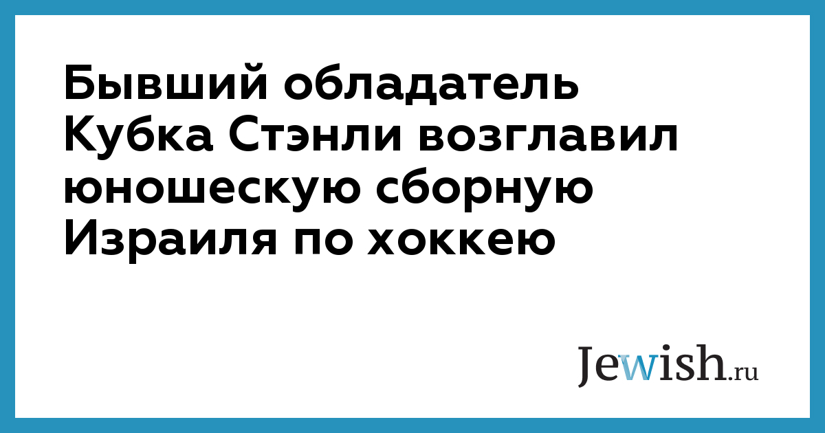 Бывший обладатель Кубка Стэнли возглавил юношескую сборную Израиля по хоккею