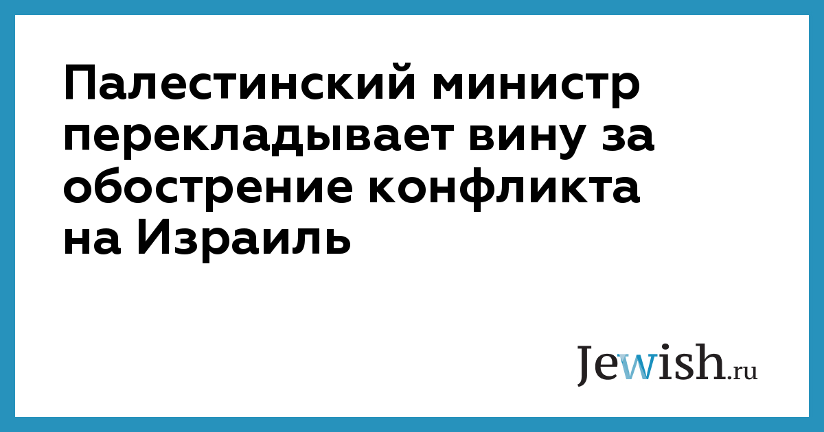 Палестинский министр перекладывает вину за обострение конфликта на Израиль