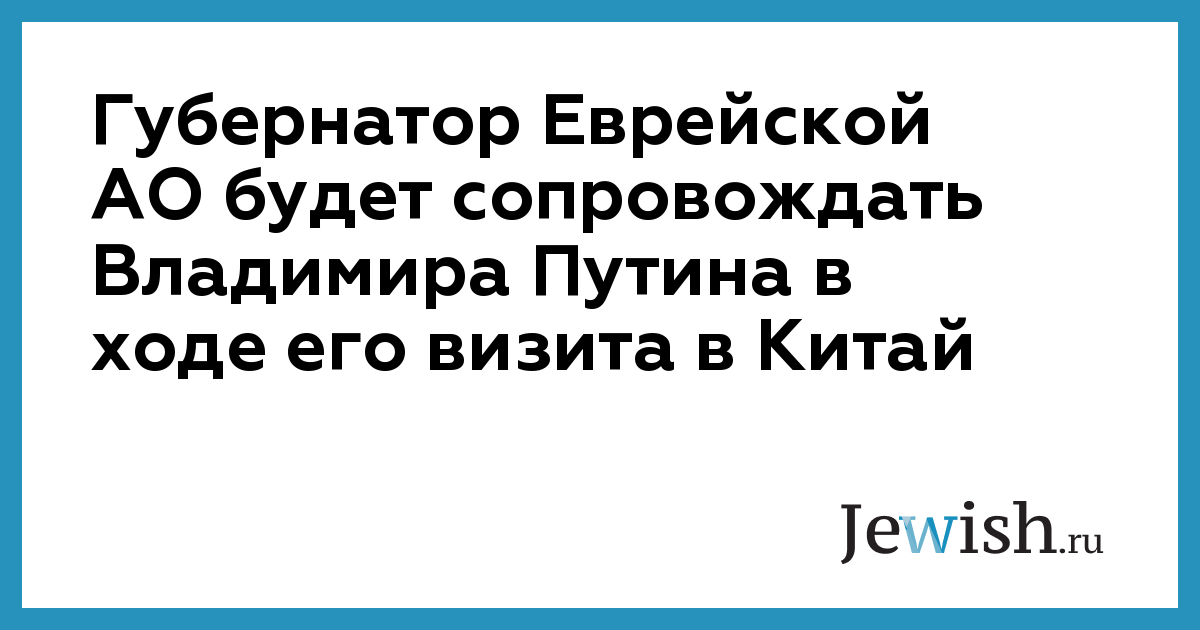 В составе официальной делегации, которая будет сопровождать Президента России в его поездке в Китайскую Народную Республику, есть и губернатор Еврейской автономии Николай Волков.