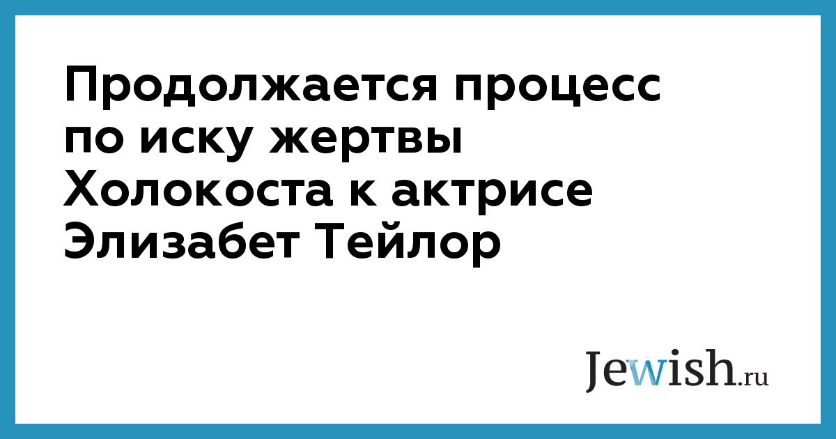 Продолжается процесс по иску жертвы Холокоста к актрисе Элизабет Тейлор