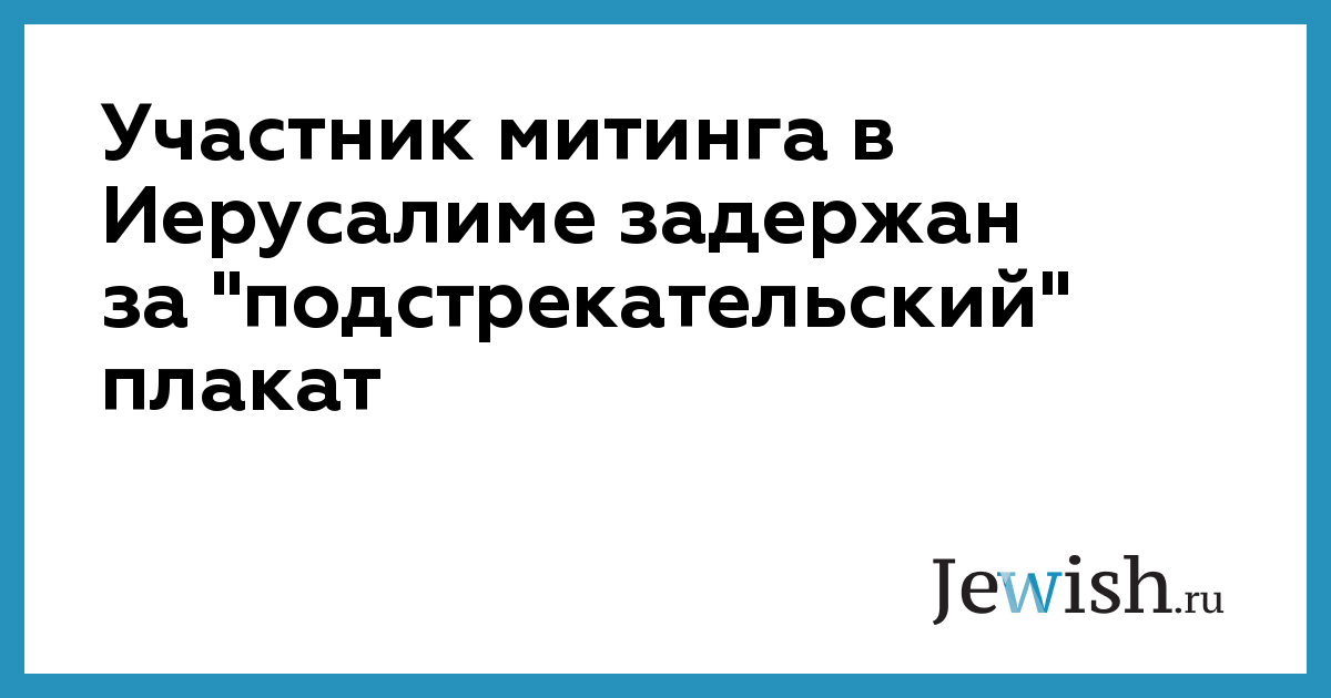 Участник митинга в Иерусалиме задержан за "подстрекательский" плакат