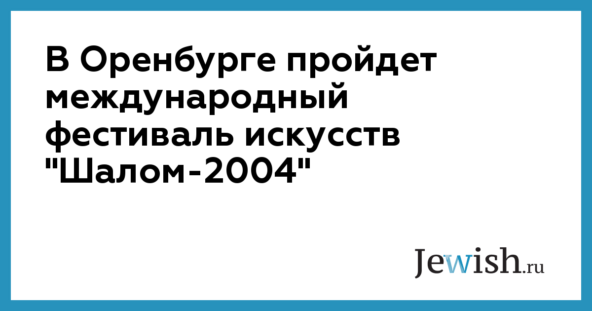 В Оренбурге пройдет международный фестиваль искусств "Шалом-2004"