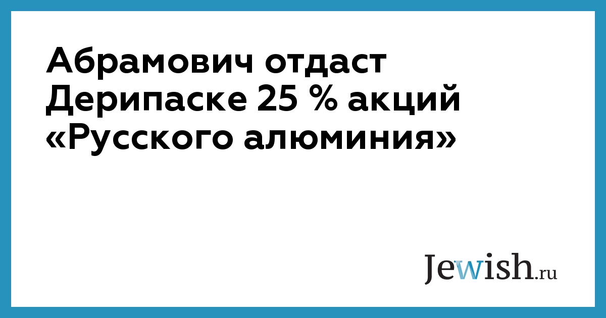Абрамович отдаст Дерипаске 25 % акций «Русского алюминия»