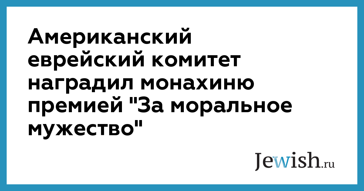 Американский еврейский комитет наградил монахиню премией "За моральное мужество"