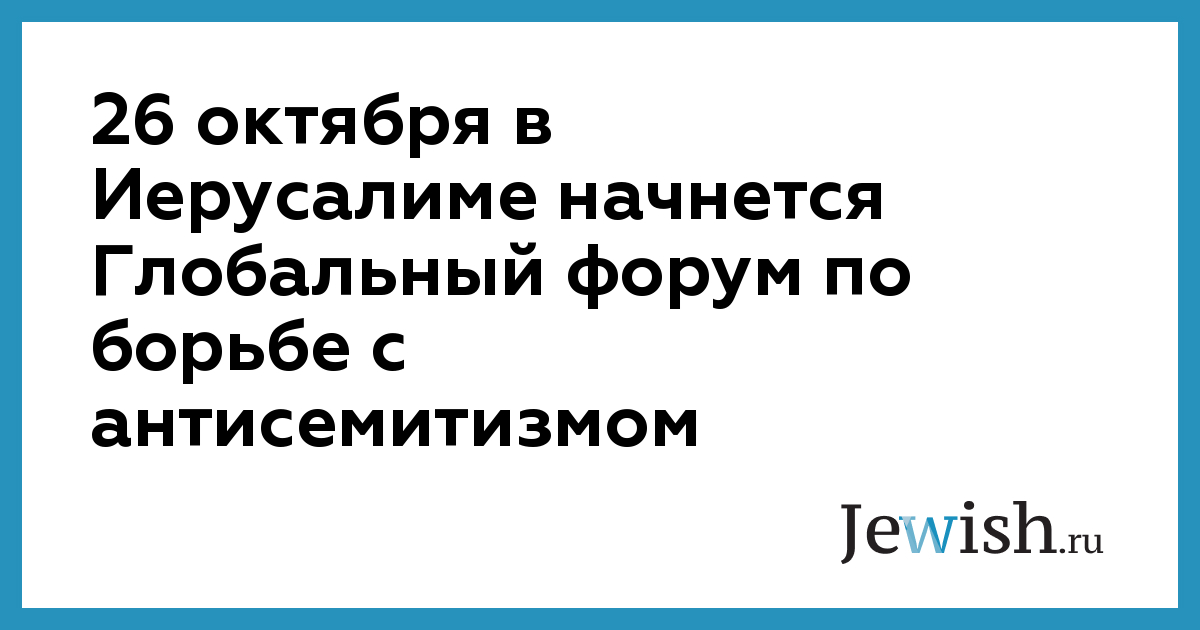26 октября в Иерусалиме начнется Глобальный форум по борьбе с антисемитизмом