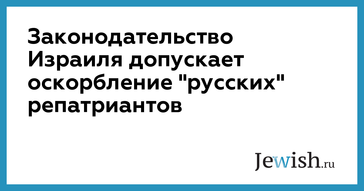 Другими словами, законодательство Израиля не допускает оскорблений представителей другой расы или национальности, но не имеет ничего против мигрантофобии (или, в нашем случае, "репатриантофобии") — дискриминации по стране исхода. А это значит, что обида, нанесенная чернокожему гражданину или гражданину арабского происхождения, справедливо карается лишением свободы сроком до пяти лет, в то время как "русских" можно безнаказанно унижать в свое удовольствие. На совершенно законном основании.