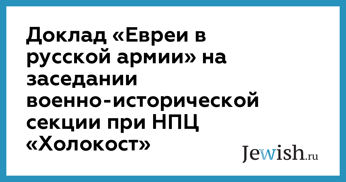 Доклад «Евреи в русской армии» на заседании военно-исторической секции при НПЦ «Холокост»