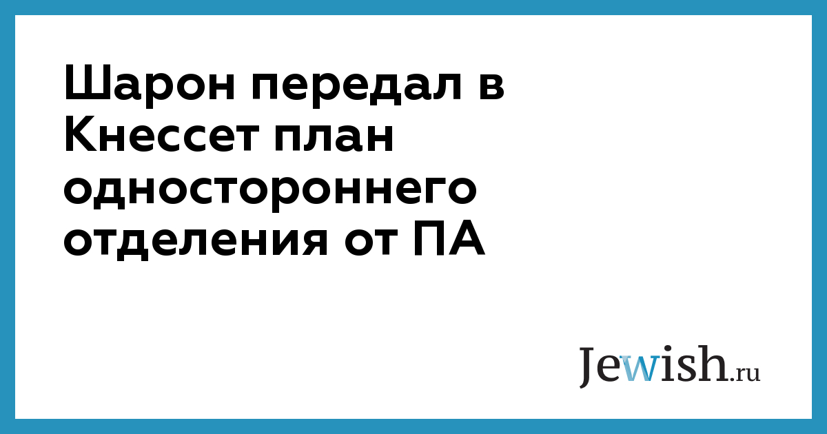 Шарон передал в Кнессет план одностороннего отделения от ПА