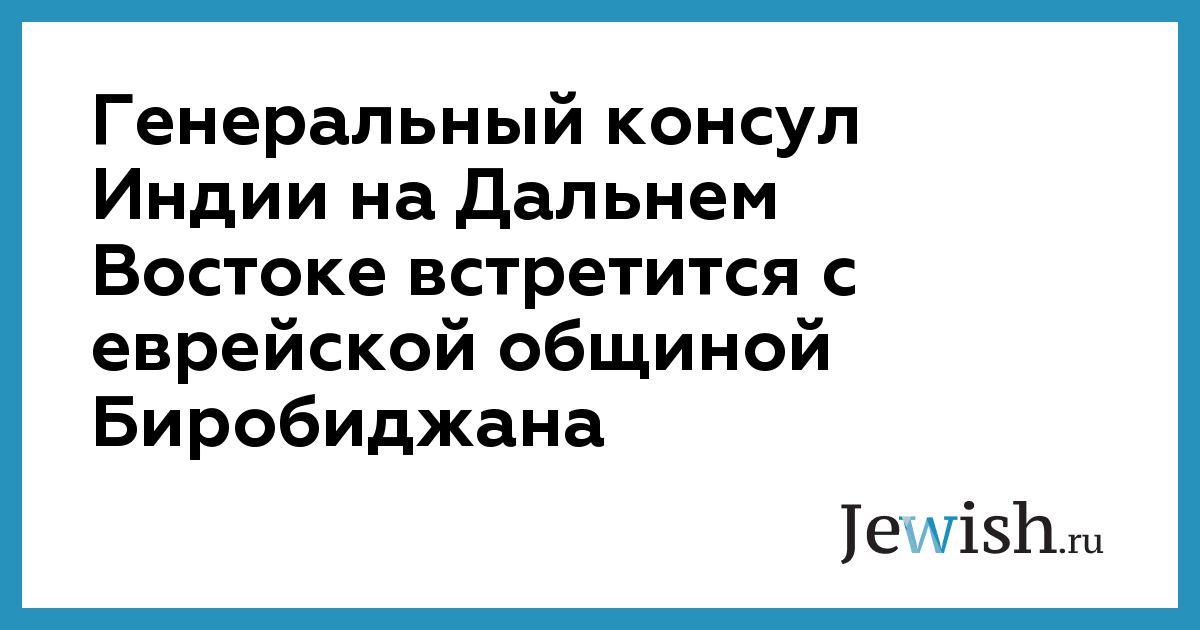 Генеральный консул Индии на Дальнем Востоке встретится с еврейской общиной Биробиджана