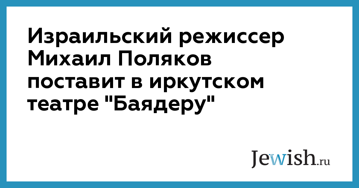 Израильский режиссер Михаил Поляков поставит в иркутском театре "Баядеру"