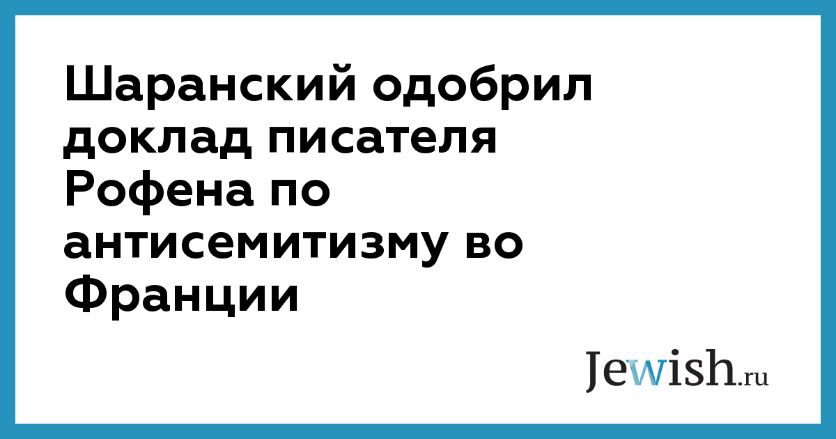 Шаранский одобрил доклад писателя Рофена по антисемитизму во Франции