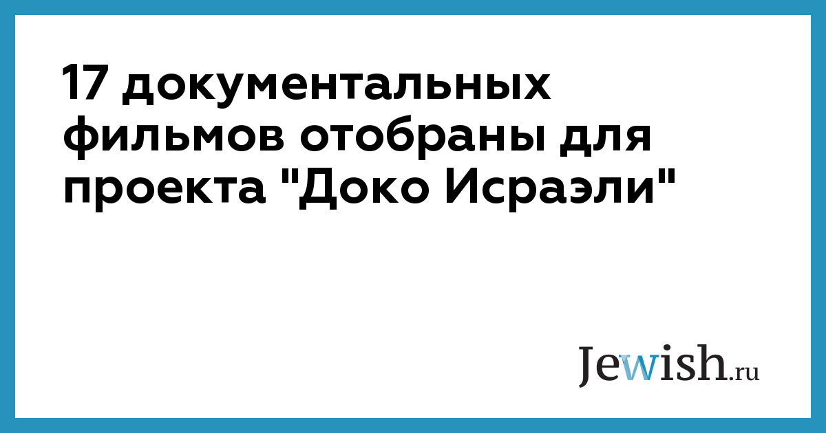 17 документальных фильмов отобраны для проекта "Доко Исраэли"