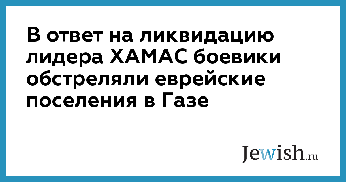 В ответ на ликвидацию лидера ХАМАС боевики обстреляли еврейские поселения в Газе