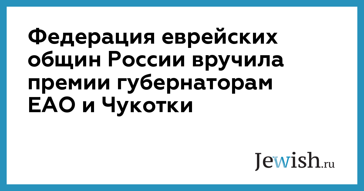 Федерация еврейских общин России вручила премии губернаторам ЕАО и Чукотки