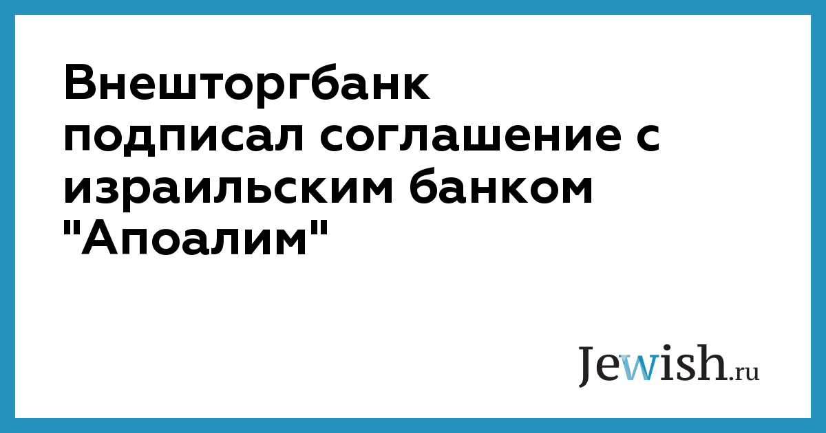 Внешторгбанк подписал соглашение с израильским банком "Апоалим"