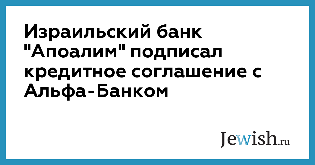 Израильский банк "Апоалим" подписал кредитное соглашение с Альфа-Банком