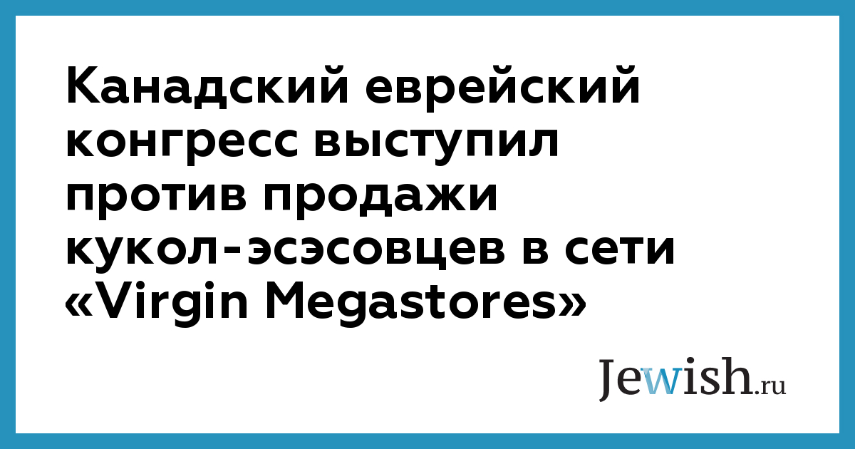 Канадский еврейский конгресс выступил против продажи кукол-эсэсовцев в сети «Virgin Megastores»