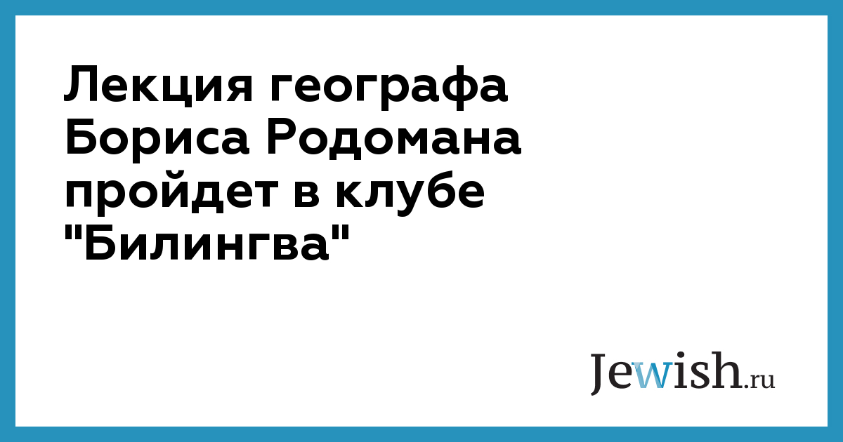 Лекция географа Бориса Родомана пройдет в клубе "Билингва"