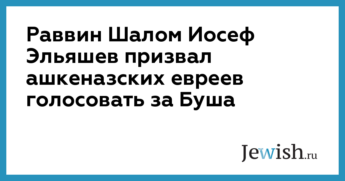 Раввин Шалом Иосеф Эльяшев призвал ашкеназских евреев голосовать за Буша