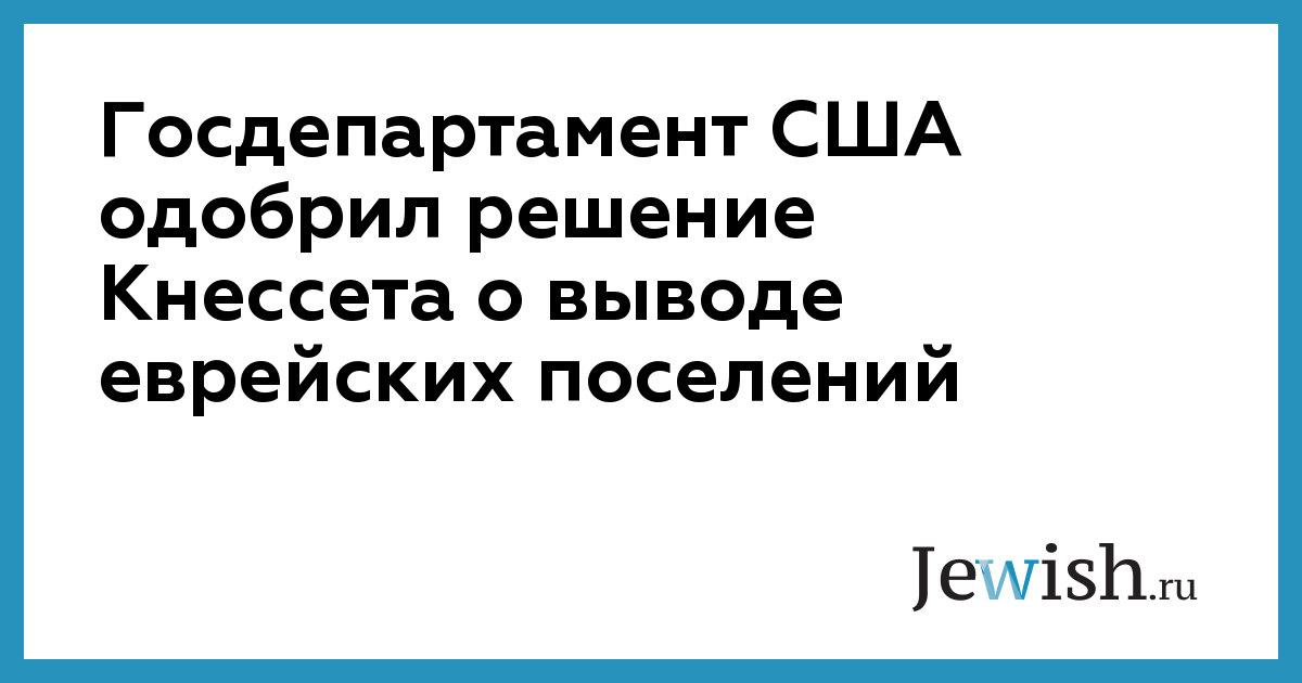 Госдепартамент США одобрил решение Кнессета о выводе еврейских поселений