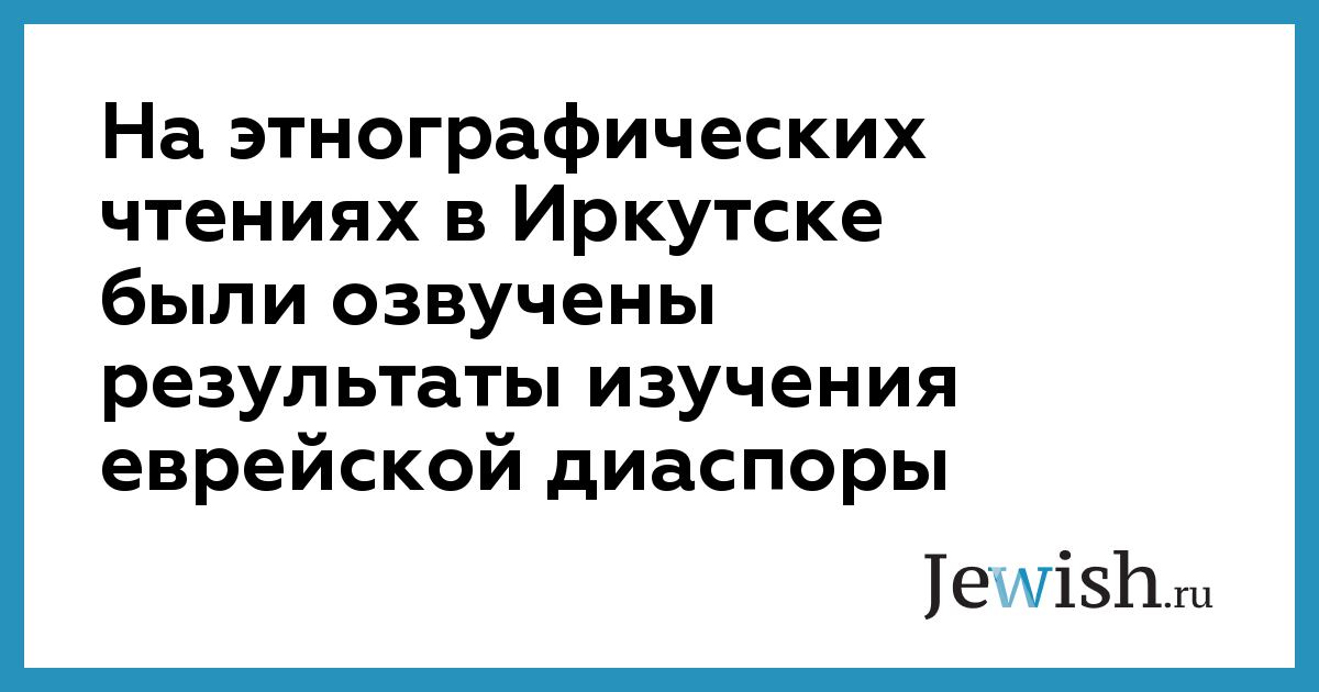 На этнографических чтениях в Иркутске были озвучены результаты изучения еврейской диаспоры