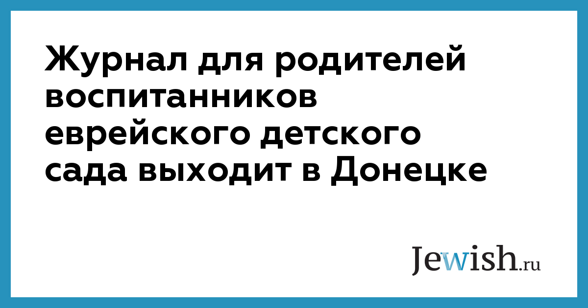 Журнал для родителей воспитанников еврейского детского сада выходит в Донецке