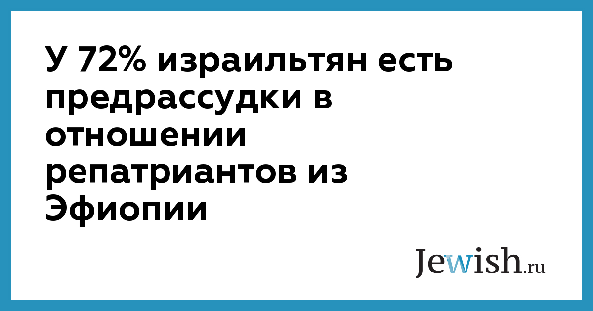 У 72% израильтян есть предрассудки в отношении сограждан-«эфиопов»: 11% считают, что «эфиопы» примитивны, 10% — что «эфиопы» вовсе не евреи, 8% убеждены, что «эфиопы» — это источник заразных заболеваний, 5% видят в «эфиопах» исключительно хулиганов и бандитов, остальные подчеркивают, что «эфиопы» ленивы и не следят за своим внешним видом. 42% высказали мнение, что репатрианты из Эфиопии не освоились по-настоящему в Израиле. Только 9% сказали интервьюерам, что «эфиопы» плодотворно трудятся на благо государства.