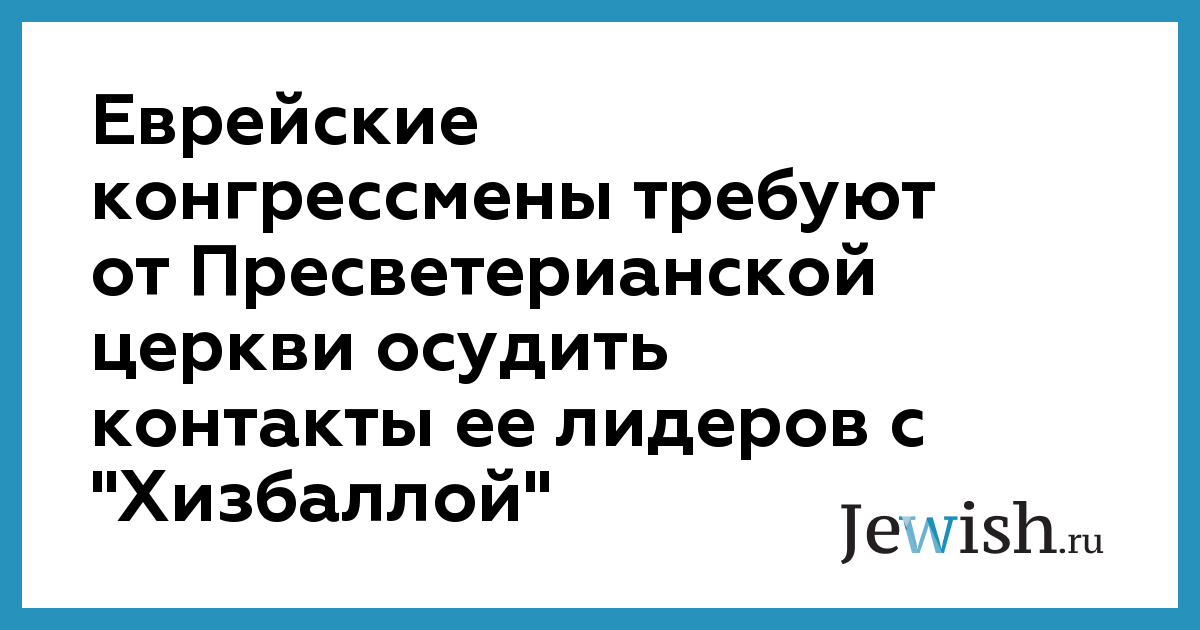 Еврейские конгрессмены требуют от Пресветерианской церкви осудить контакты ее лидеров с "Хизбаллой"