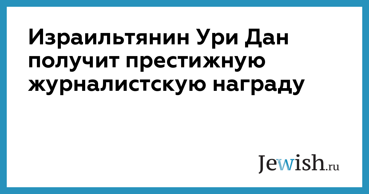 Израильтянин Ури Дан получит престижную журналистскую награду