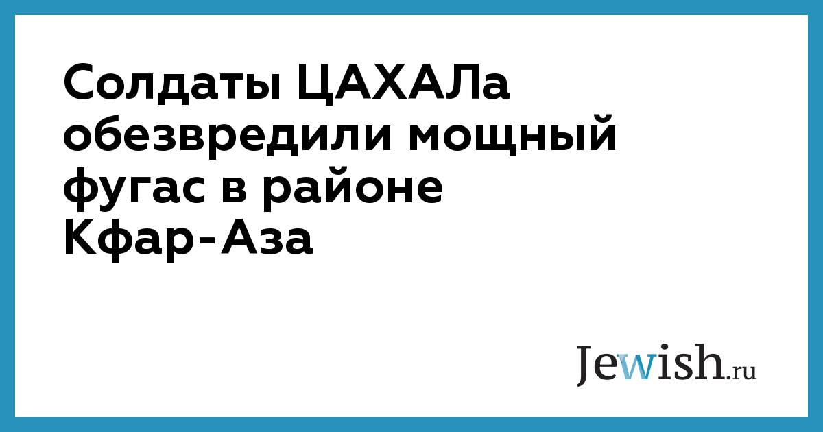 Солдаты ЦАХАЛа обезвредили мощный фугас в районе Кфар-Аза
