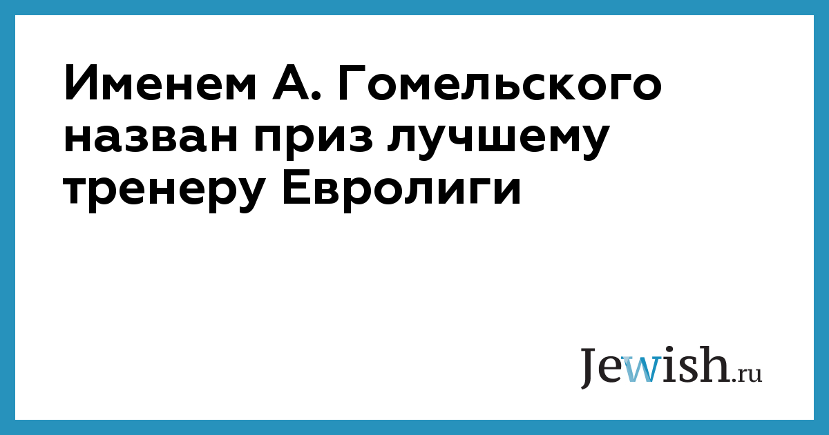 Именем А. Гомельского назван приз лучшему тренеру Евролиги