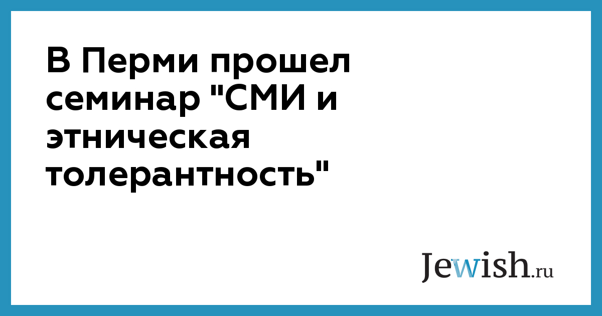 Сегодня в Перми проходил проблемно-целевой семинар "СМИ и этническая толерантность". Встреча была организована в рамках Программы развития и гармонизации национальных отношений народов Пермской области по инициативе Управления внутренней политики администрации области и региональной общественной организации Союза журналистов России. Совместный проект финансируется за счет средств гранта комиссии по демократии посольства США в Москве "Социальная журналистика: право и практика". Основные цели семинара — внедрение принципов и норм толерантного освещения этнических проблем в практику журналистской работы, повышение профессионального уровня работников СМИ, налаживание взаимодействия между лидерами национальных объединений и журналистами региональных и местных СМИ. Во встрече участвуют журналисты региональных и местных печатных и электронных СМИ, внештатные авторы, а также лидеры национально-культурных объединений Пермской области. В программе: лекция о проблемах этнической журналистики, обсуждение технологий и приемов пропаганды этничности и тренинг, заключающийся в подробном рассмотрении приемов и методов создания образов "мы" и "они", конструирование позитивных идей для СМИ с дискуссией по теме семинара.