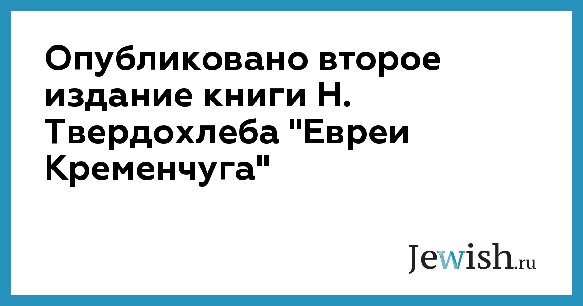 Опубликовано второе издание книги Н. Твердохлеба "Евреи Кременчуга"