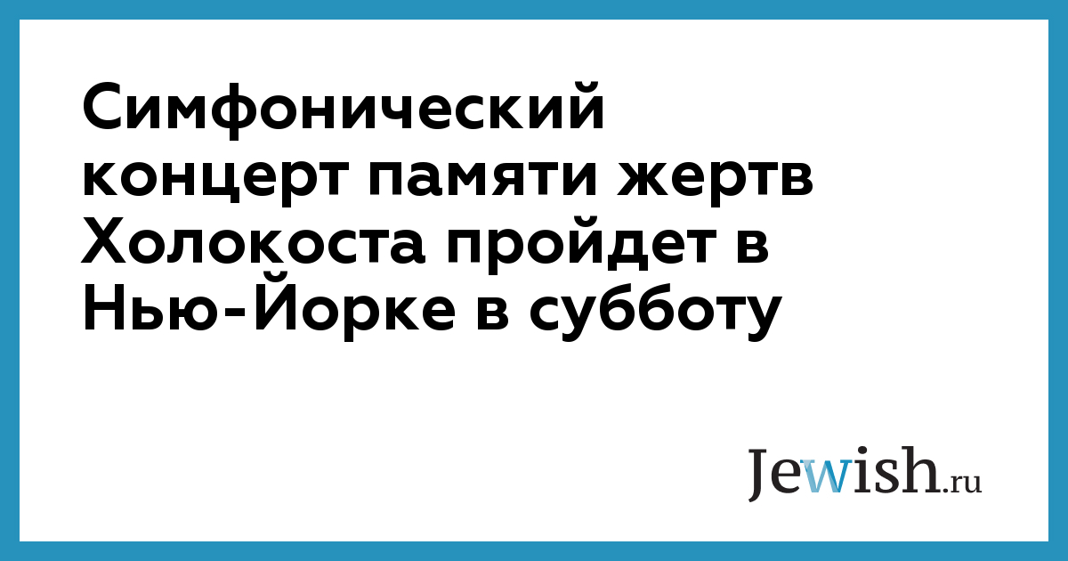 Симфонический концерт памяти жертв Холокоста пройдет в Нью-Йорке в субботу