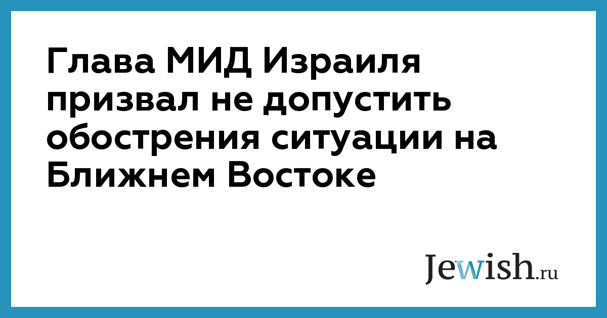 Глава МИД Израиля призвал не допустить обострения ситуации на Ближнем Востоке