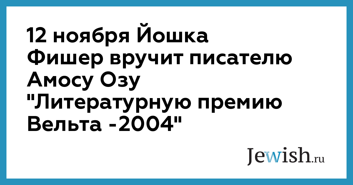12 ноября Йошка Фишер вручит писателю Амосу Озу "Литературную премию Вельта -2004"