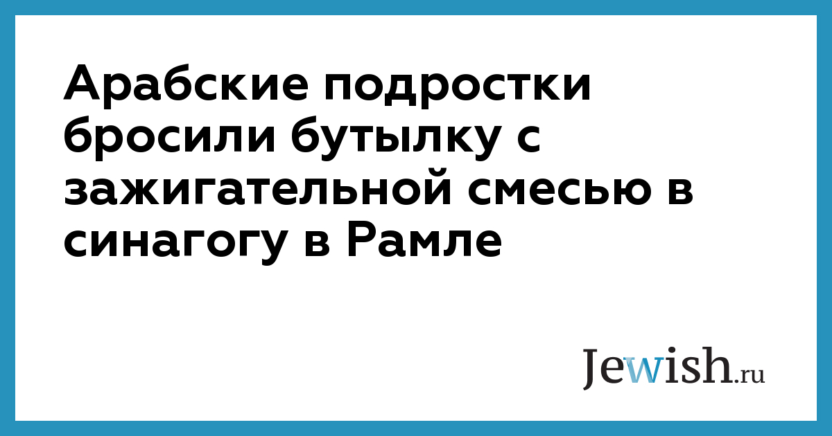 Арабские подростки бросили бутылку с зажигательной смесью в синагогу в Рамле