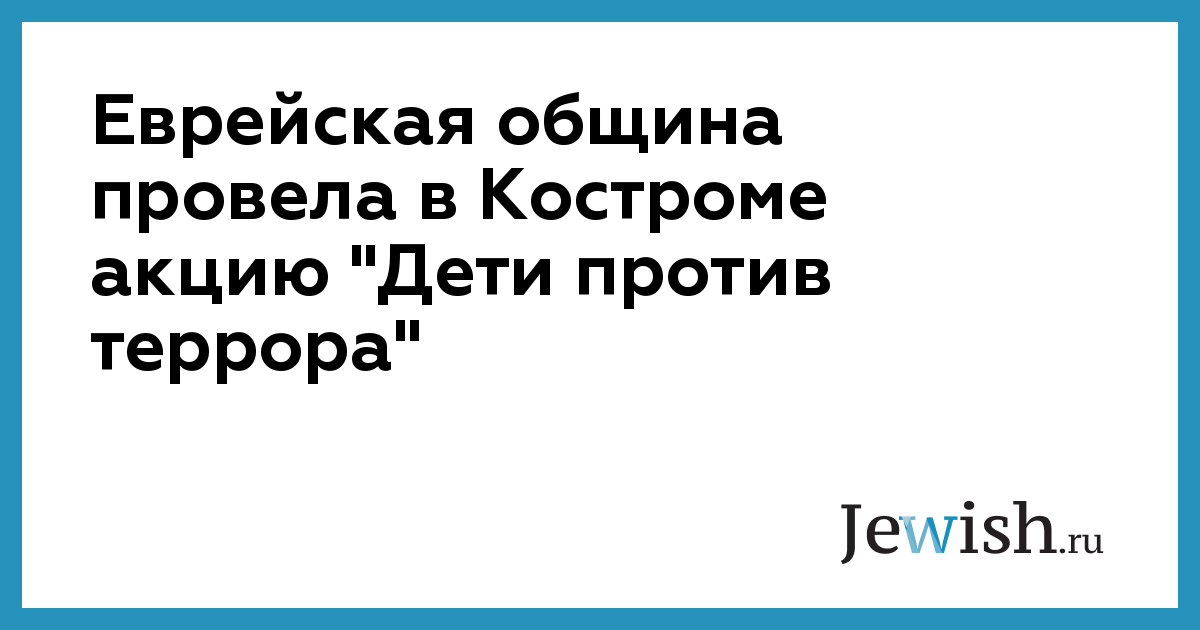 7 ноября по инициативе международной женской организации "Проект Кешер" и костромской еврейской общины была организована акция "Дети против террора". Акцию поддержали областная и городская администрация. В ней приняли участие дети из еврейской, татарской, азербайджанской, армянской и немецкой общин Костромы. К большому сожалению, в последний момент не смогли принять участие в акции дети из костромского детского дома, поскольку там был объявлен карантин. Все собрались в помещении художественной школы им. Шлаена, каждый ребенок получил по воздушному шарику стремящемуся ввысь. Мероприятие открыла представитель областной администрации Любовь Владимировна Чистякова, которая передала всем участникам поздравление от губернатора Костромской области Виктора Андреевича Шершунова, затем выступили главный раввин Костромской области Нисон Руппо, имам-хатыб костромской мечети Марат-хазрят, председатели еврейской, азербайджанской и немецкой общин. Затем все познакомились, рассчитались на 1-5, таким образом разделившись на 5 команд (не по национальному признаку!). Затем каждая команда (с помощью педагогов и учеников худшколы) нарисовала плакат против террора, разукрасила воздушные шарики. Также можно было ознакомится с выставкой антитеррористических рисунков выполненных учениками самой художественной школы. После этого все представили свои плакаты, рассказали о том, что на них изображено, каждый ребенок получил небольшой подарок, ансамбль "Улыбка" исполнил несколько песен, и все прошли за столы, накрытые фруктами и водой. Во время акции дети разных народов имели возможность пообщаться между собой, и организаторы акции надеются, что когда эти дети вырастут они сами не станут террористами, а наоборот, будут бороться против террора. Саму акцию организовала и провела Нюся Вольфовна Гольдштейн.