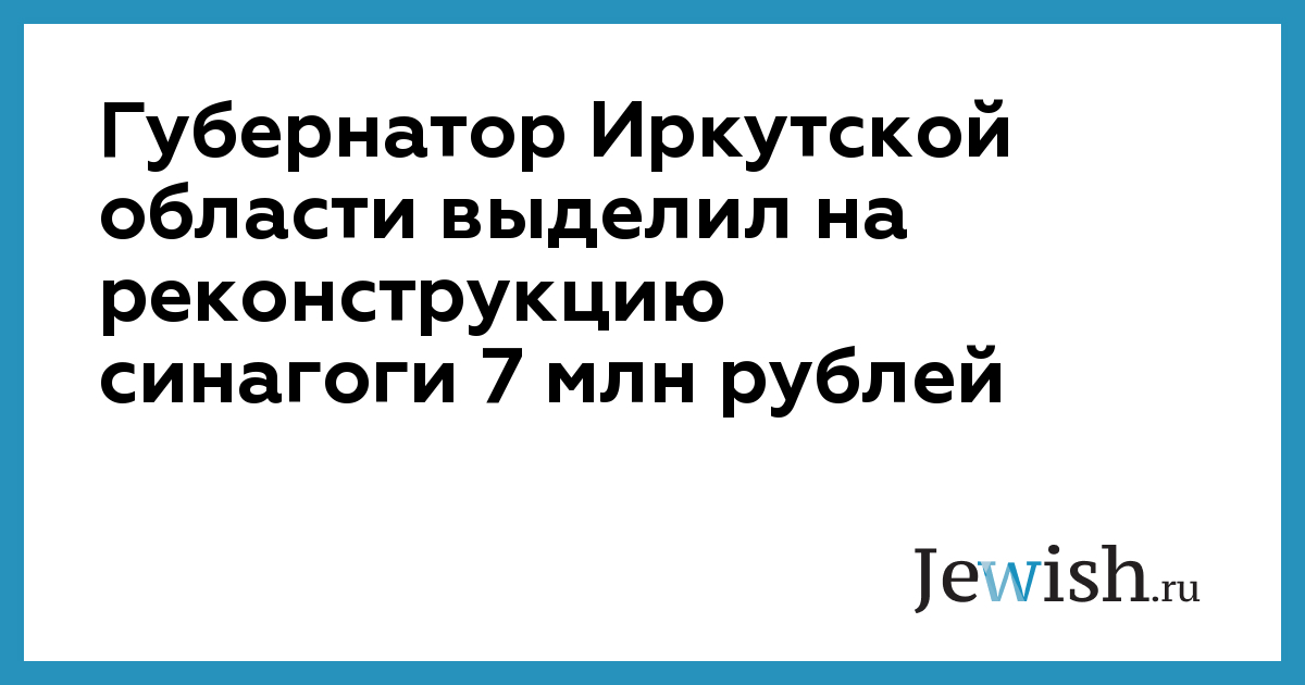 Губернатор Иркутской области выделил на реконструкцию синагоги 7 млн рублей