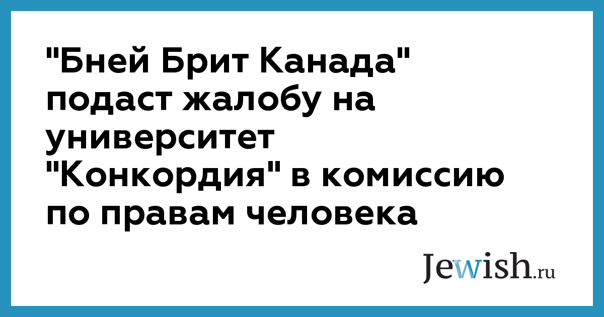 "Бней Брит Канада" подаст жалобу на университет "Конкордия" в комиссию по правам человека