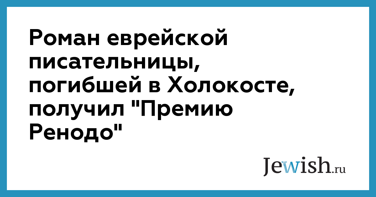 Роман еврейской писательницы, погибшей в Холокосте, получил "Премию Ренодо"
