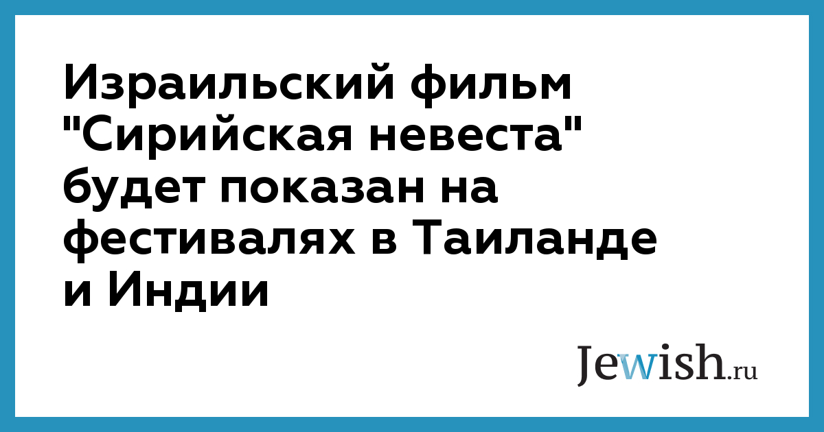 Израильский фильм "Сирийская невеста" будет показан на фестивалях в Таиланде и Индии
