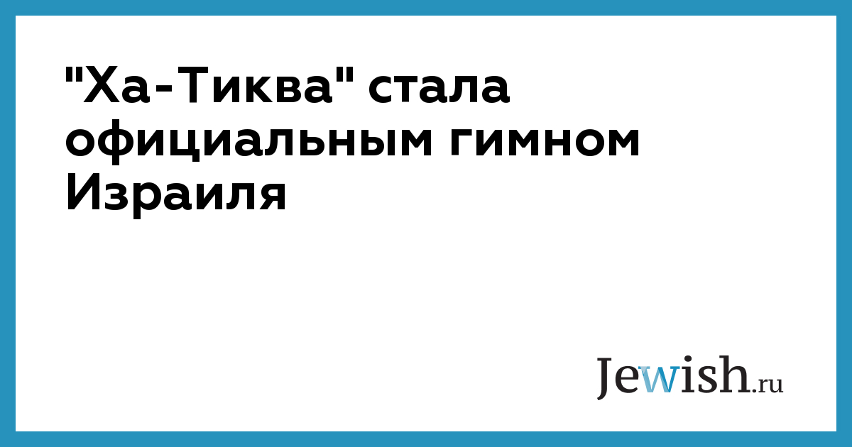 Только с сегодняшнего дня песня "Ха-Тиква" ("Надежда") стала официально утвержденным гимном еврейского государства, хотя неформально считается таковой уже много лет.