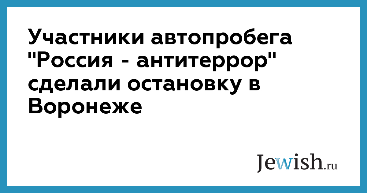 После остановки и проведения акции на площади Ленина в Воронеже участники автопробега отправились в Ростов, где пройдет вторая акция, посвященная антитеррору. Затем участники проследуют по маршруту: Ставрополь — Минводы — Нальчик — Беслан — Назрань — Буденовск — Махачкала — Элиста и вернутся через Волгоград и Тамбов в Москву. По пути следования состоятся митинги, пресс-конференции и встречи с общественностью.